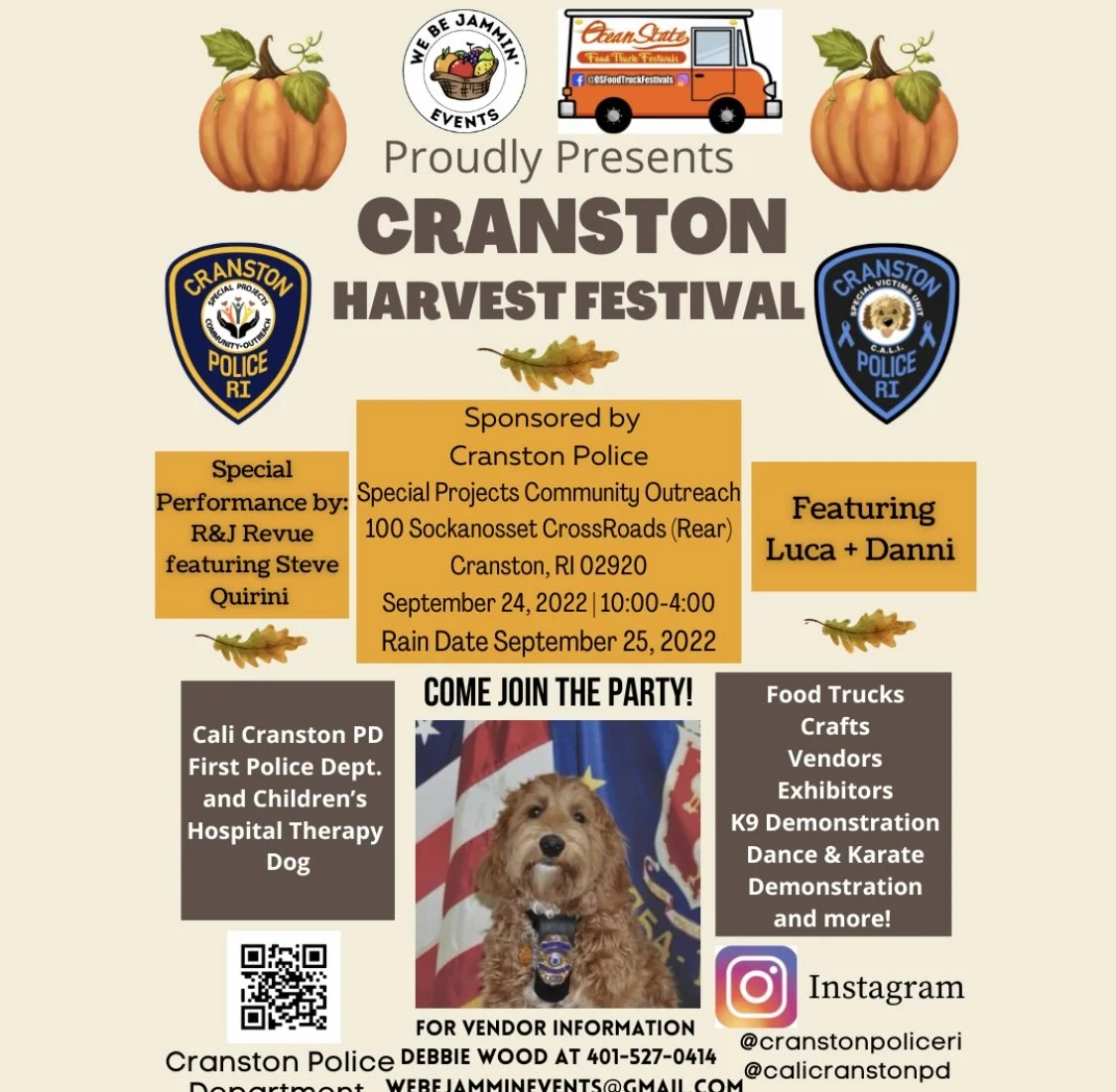 Cranston Harvest Festival Saturday, September 24, 2022 10:00 AM 4:00 PM Faith Endures 100 Sockanosset Cross Road Cranston, RI, 02920 United States (map) Google Calendar ICS